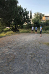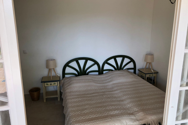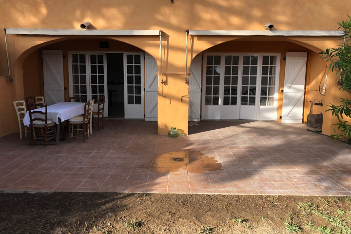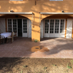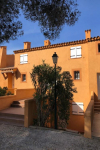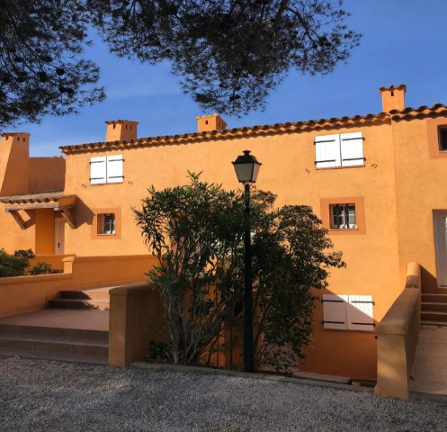 Mitoyen, de plain-pied (49 m²) avec terrasse mi couverte (45 m²) et jardin (70 m² ) propice au repos au milieu des pins parasols, muriers et lauriers roses, vous profiterez d'une piscine et 3 terrains de tennis de copro à 400 m à pied et d'un terrain de pétanque sur place.